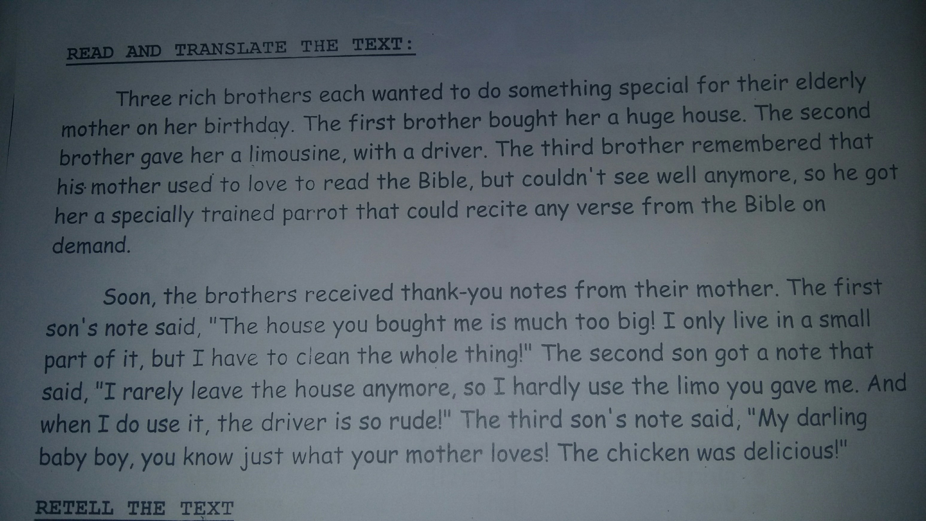 Помогите,пожалуйста, задать 10 вопросов на этот текст. Каждому типу вопросов по 2 вопроса(2 gerenral, 2 alternative,2 tag, 2 special, 2 subject). И чтобы в вопросе было не менее 8 слов. Я не мог сама делать.У меня слишком короткие,помогите,пожалуйста!