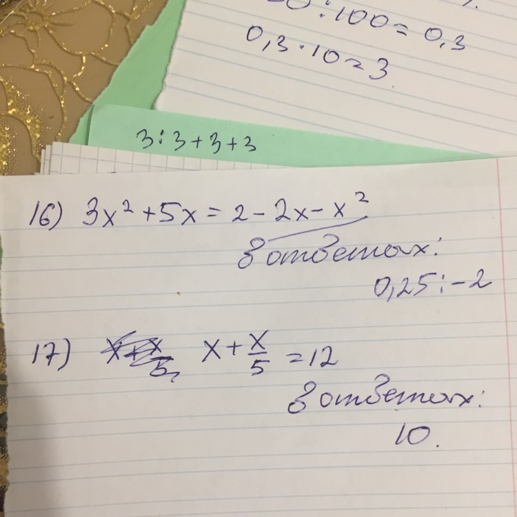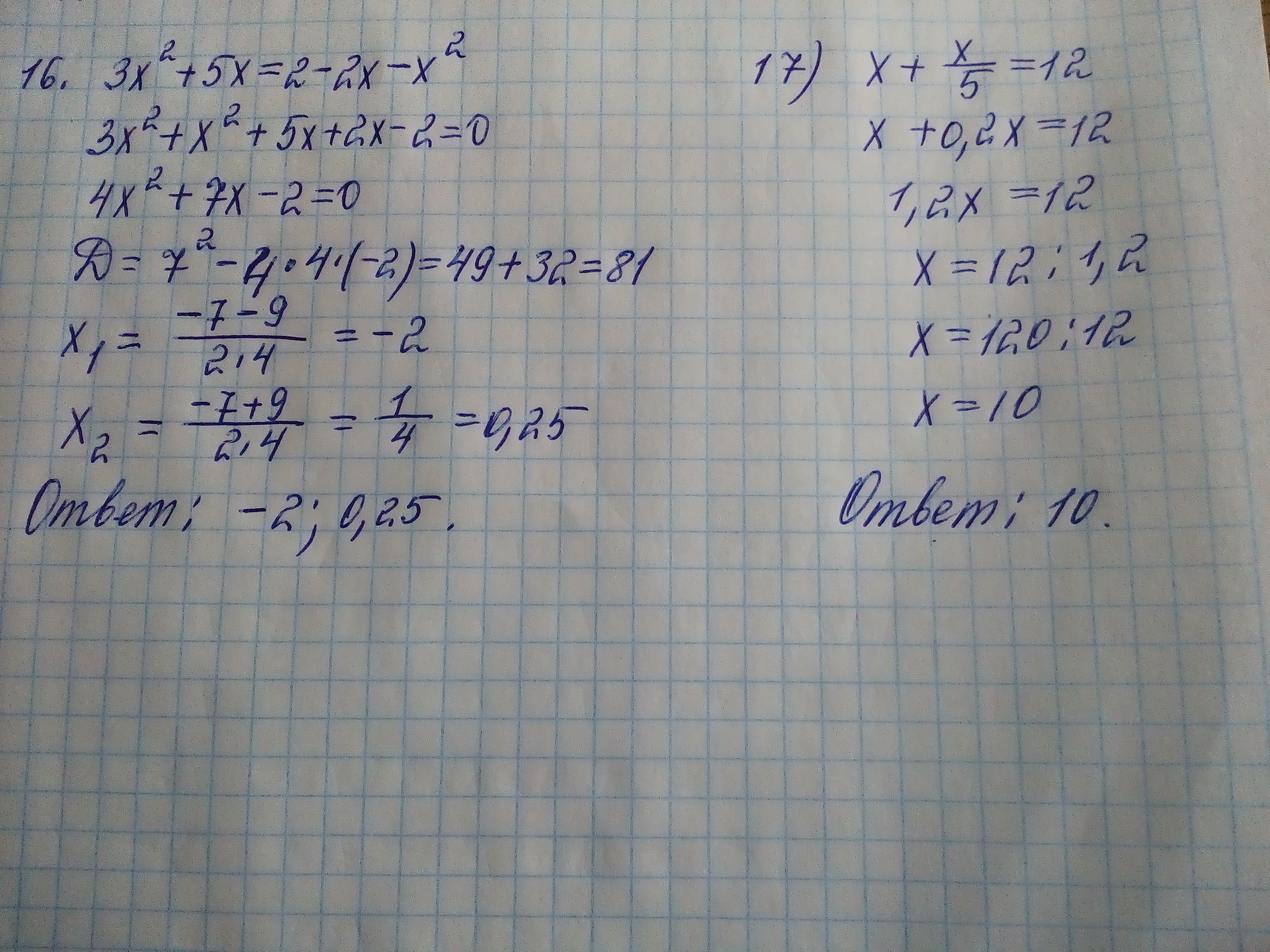 16) 3 x^2 + x^2 + 5x + 2x - 2 = 0;