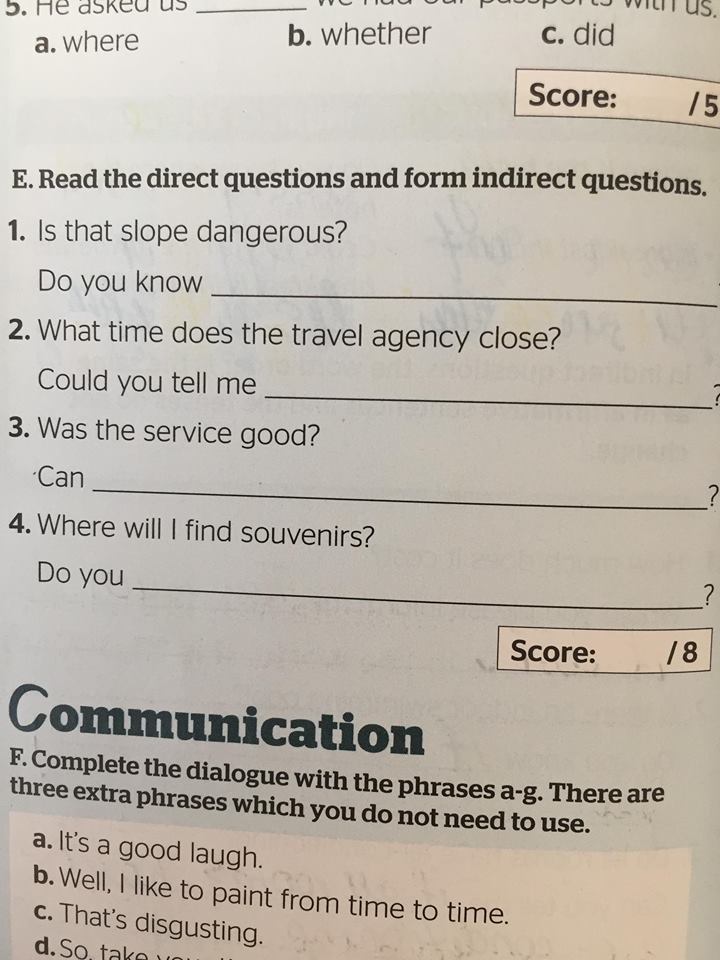 2 Gina asked Fred where he had gone on holiday.