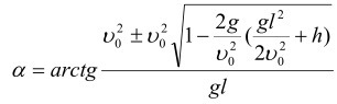 h=tga*L - g*L^2*(1+tg^2a)/(2v^2)