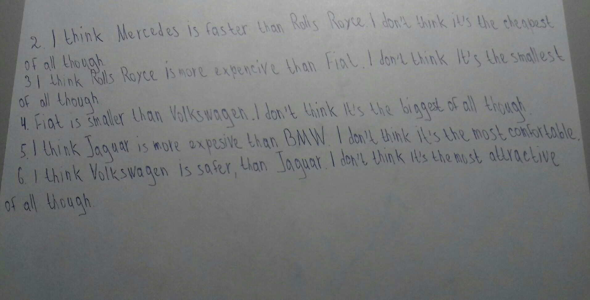 5. I think Jaguar is more expesive than BMW. I don't think it's the most comfortable.