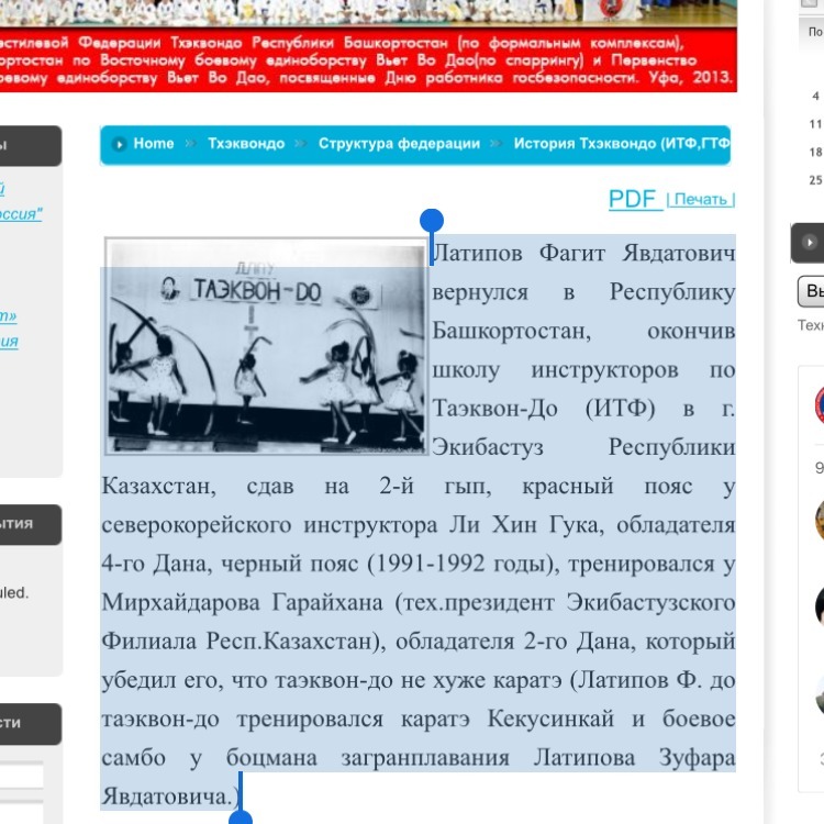 Латипов Фагит Явдатович вернулся в Республику Башкортостан, окончив школу инструкторов по Таэквон-До (ИТФ) в г. Экибастуз Республики Казахстан, сдав на 2-й гып, красный пояс у северокорейского инструктора Ли Хин Гука, обладателя 4-го Дана, черный пояс (1991-1992 годы), тренировался у Мирхайдарова Гарайхана (тех.президент Экибастузского Филиала Респ.Казахстан), обладателя 2-го Дана, который убедил его, что таэквон-до не хуже каратэ (Латипов Ф. до таэквон-до тренировался каратэ Кекусинкай и боевое самбо у боцмана загранплавания Латипова Зуфара Явдатовича.)