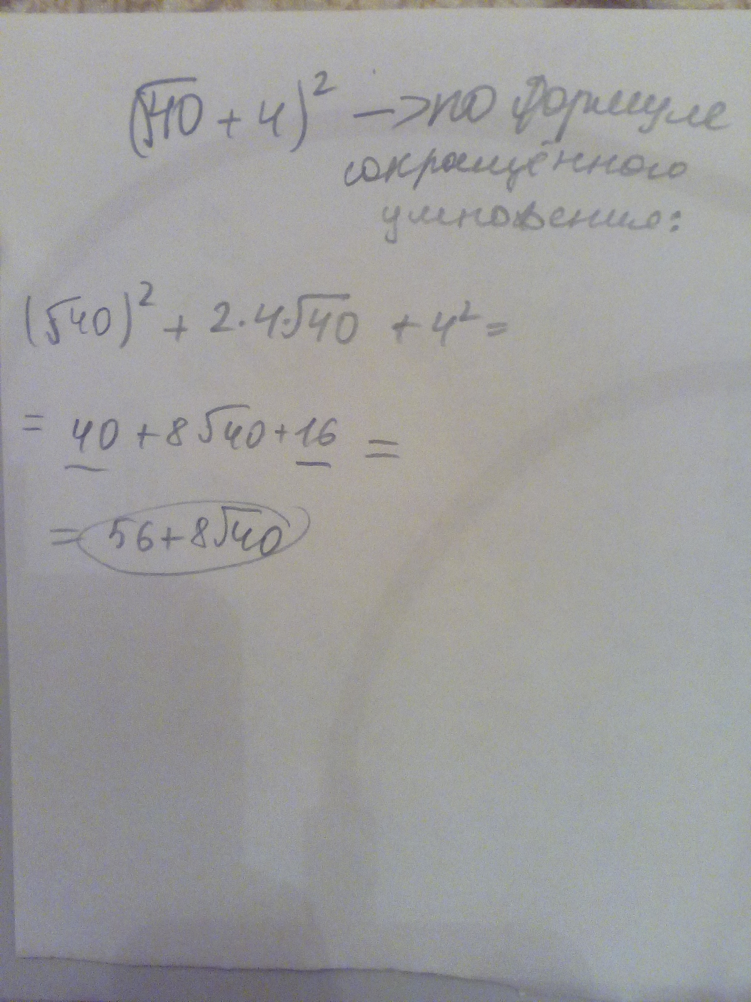 Ты возводишь выражение по формуле (a+b)^2= a^2+2ab+b^2