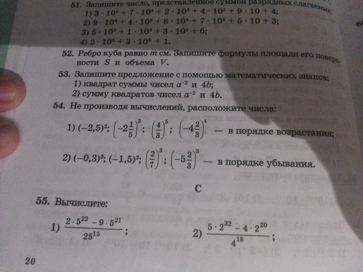 почему первое число больше за третье , потому что (В учебнике ктото глюканул - без вычислений здесь нельзя , третье число должно было быть положительным, но со числителем меньше знаменателя, т.е дробь меньшая за 1, которая в любом степени меньше 1,а значит была меньше любых других чисел в любой натуральной степени)- НО АВТОРЫ УЧЕБНИКА ЗДЕСЬ ЯВНО ПРОЗЕВАЛИ