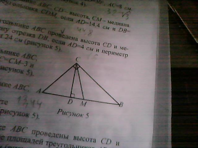 Найдем CD ( треугольник CDM прямоугольный CD⊥AB):