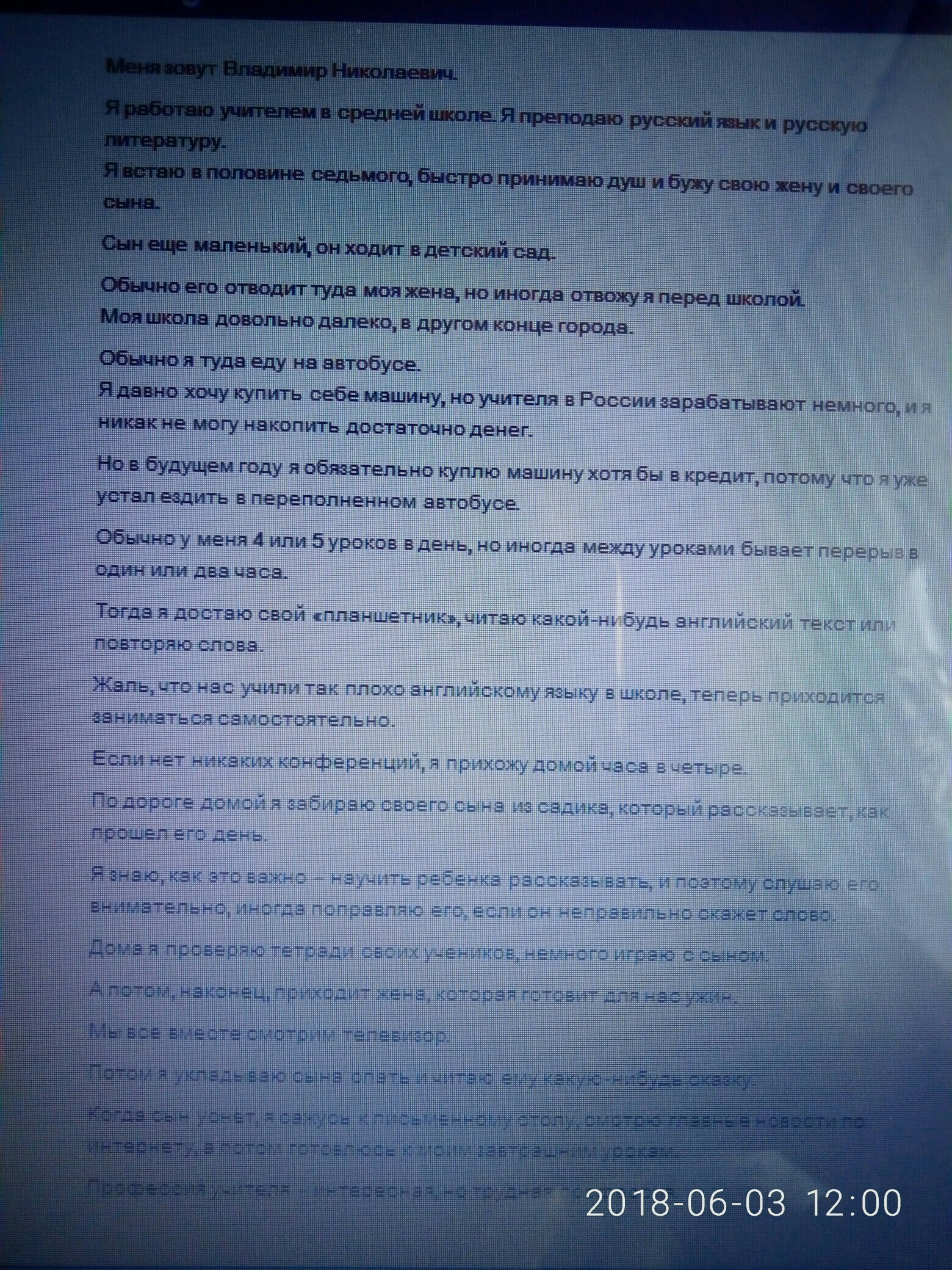 НАПИСАТЬ ТЕКСТ ПРО РОБОЧИЙ ДЕНЬ В ШКОЛЕ