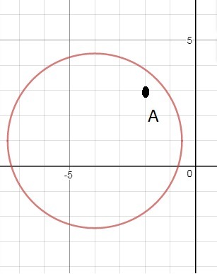 Окружность задано уравнением (x+4)²+(y-1)²=12. Как расположено точка А(-2;3) относительно этой окружности?