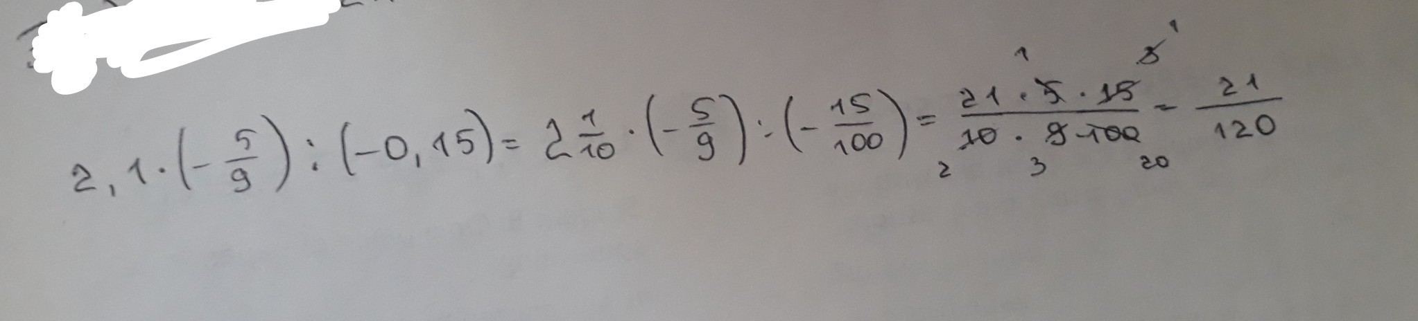 (2,1)∙(- 5/9 ): (-0,15)=