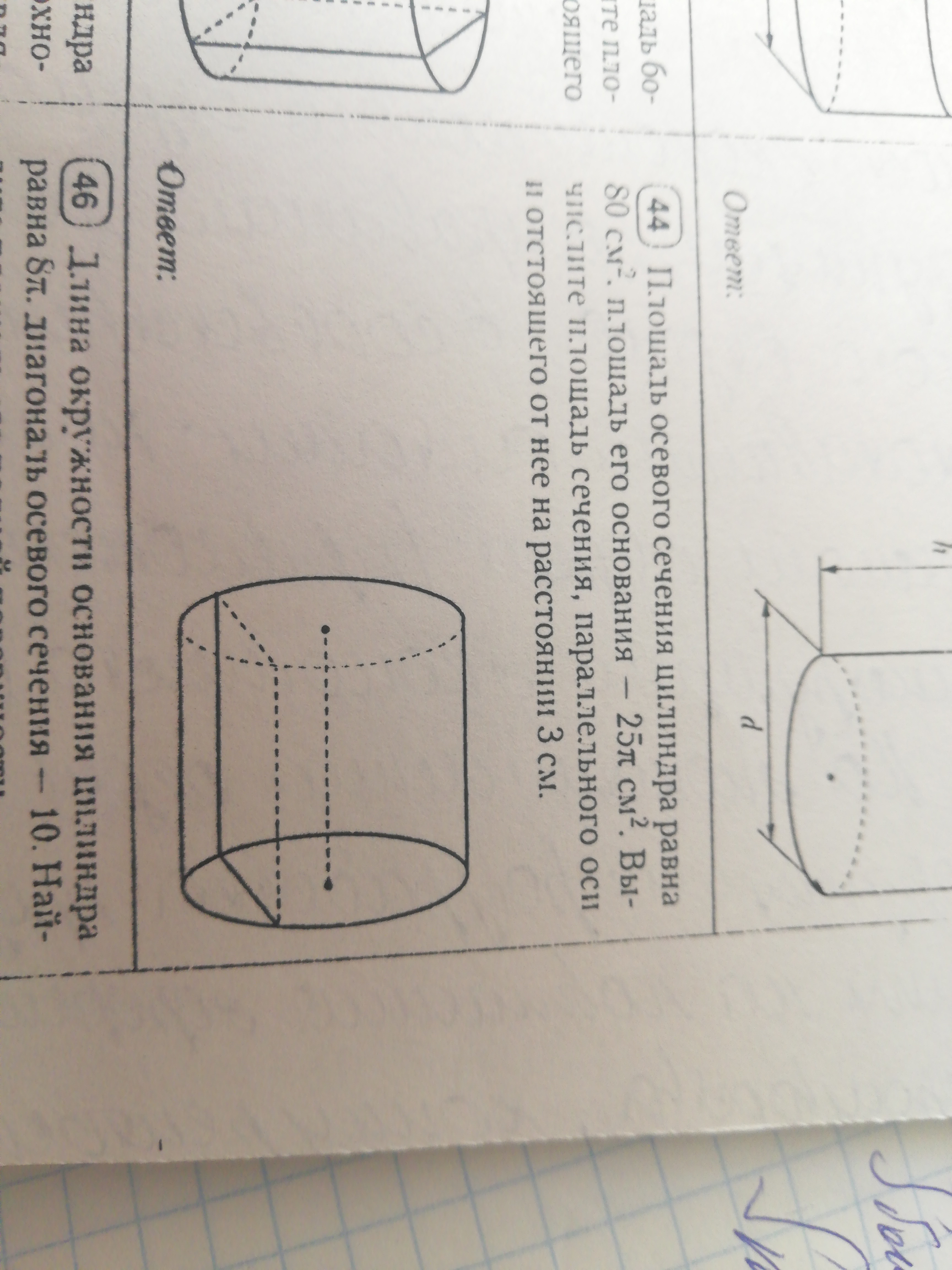 Половина хорды основания a/2, являющаяся стороной сечения как первый катет, расстояние от этой хорды до центра основания как второй катет, и радиус основания как гипотенуза.