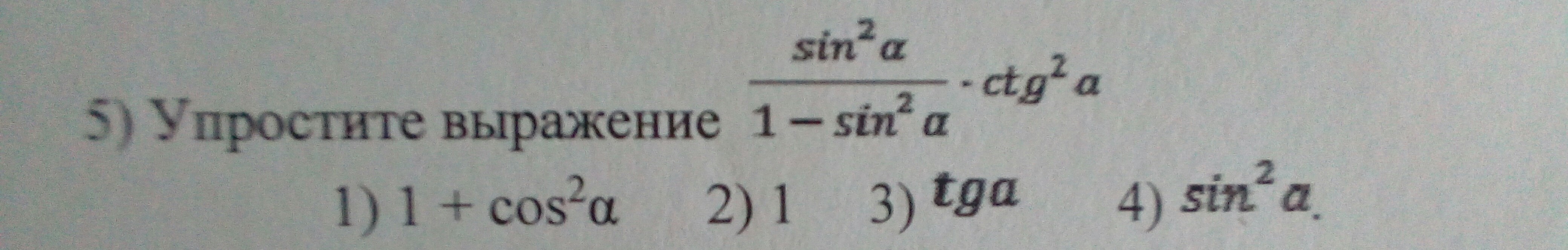 5) начну со знаменателя: 1-sin2a = cos2a (это основное тождество тригонометрии).
