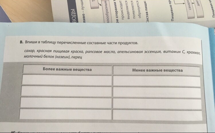 Б)менее важные:пищевая краска,рапсовое масло,апельсиновая эссенция,казеин.