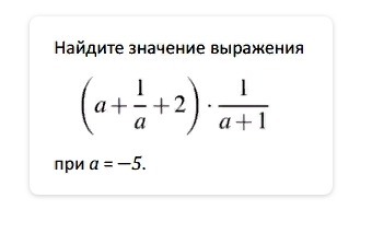 a^2+1+2a/a × 1/a+1 = (a+1)^2 / a(a+1) = a+1/a=-5+1 / -5 = -4/-5= 4/5