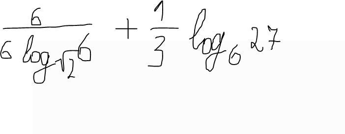 6 / (6log(√2) 6 ) + 1/3 log(6) 27 = 1/(log(√2) 6 ) + 1/3 log(6) 3³ = log(6) √2 + log(6) 3 = log(6) 3√2