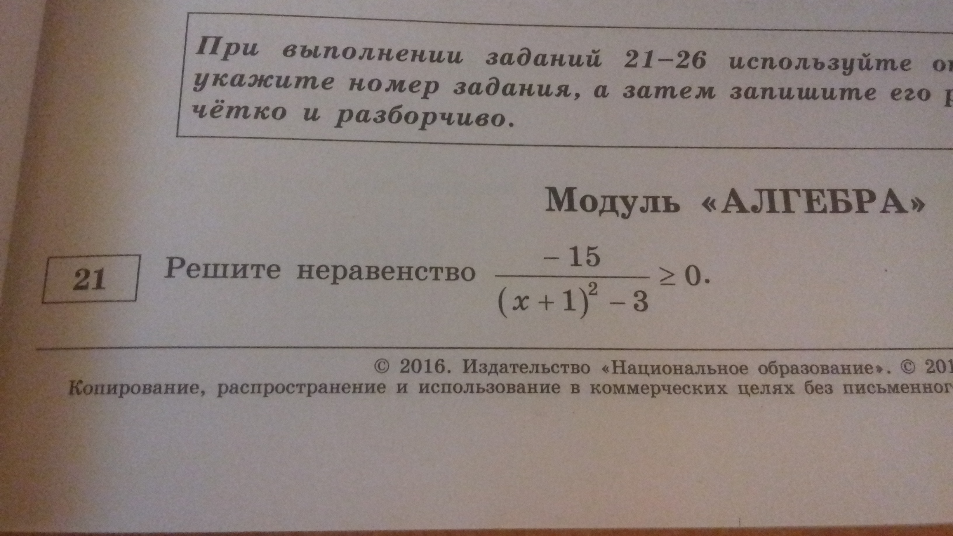 15/(х²+2х+1-3)≤0поскольку мы убрали минус в числителе знак неравенства поменялся. парабола х²+2х-2 ≤0 решением уравнения