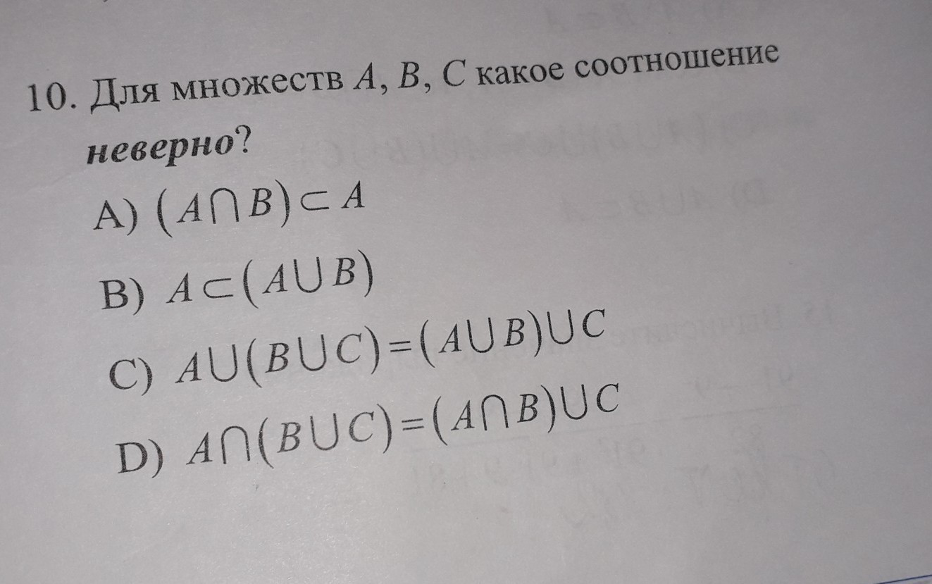 Ответ под буквой: D) A∩(B∪C) = (A∩B)∪C
