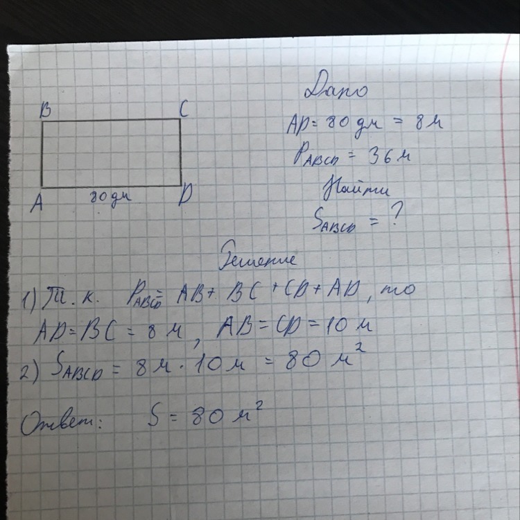 Как то так) Площадь прямоугольника равна 80 м^2