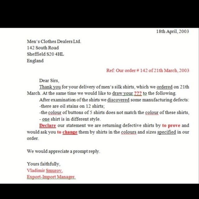 3. Signature is put under the complementary close on the left, but there should be a blank line between them.