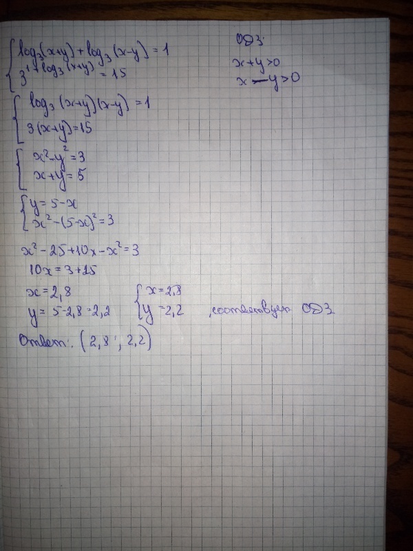 Ответ: x=2,8; y=2,2