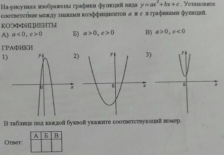 1) - А a<0 (ветви вниз), c>0 (пересечение с ОУ)