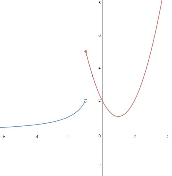 Для начала строим эти 2 графика на своих промежутках(первый при x≥-1, второй при x<-1).(см. приложение)