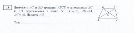 решение в скане. В трапеции есть два подобных треугольника. Их нужно знать.Облегчает жизнь.