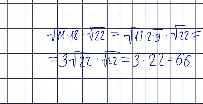 (√11*18)*√22 Как это решать? Вообще не знаю, помогите, решите по действиям, хочу узнать как это решать. PS скобка значит что √(корень) объединённый, на оба числа.