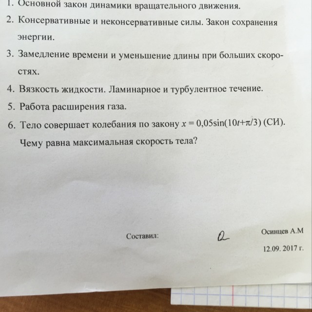 Скорость = производная перемещения по времени, т.е. v = x' = 0.5cos(10t+π/3), максимум этой функции когда косинус = 1, т.е. максимальная скорость v_max = 0.5 м/с