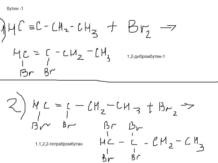 бутан, бутен и бутин сгорают с образованием СО2 и Н2О