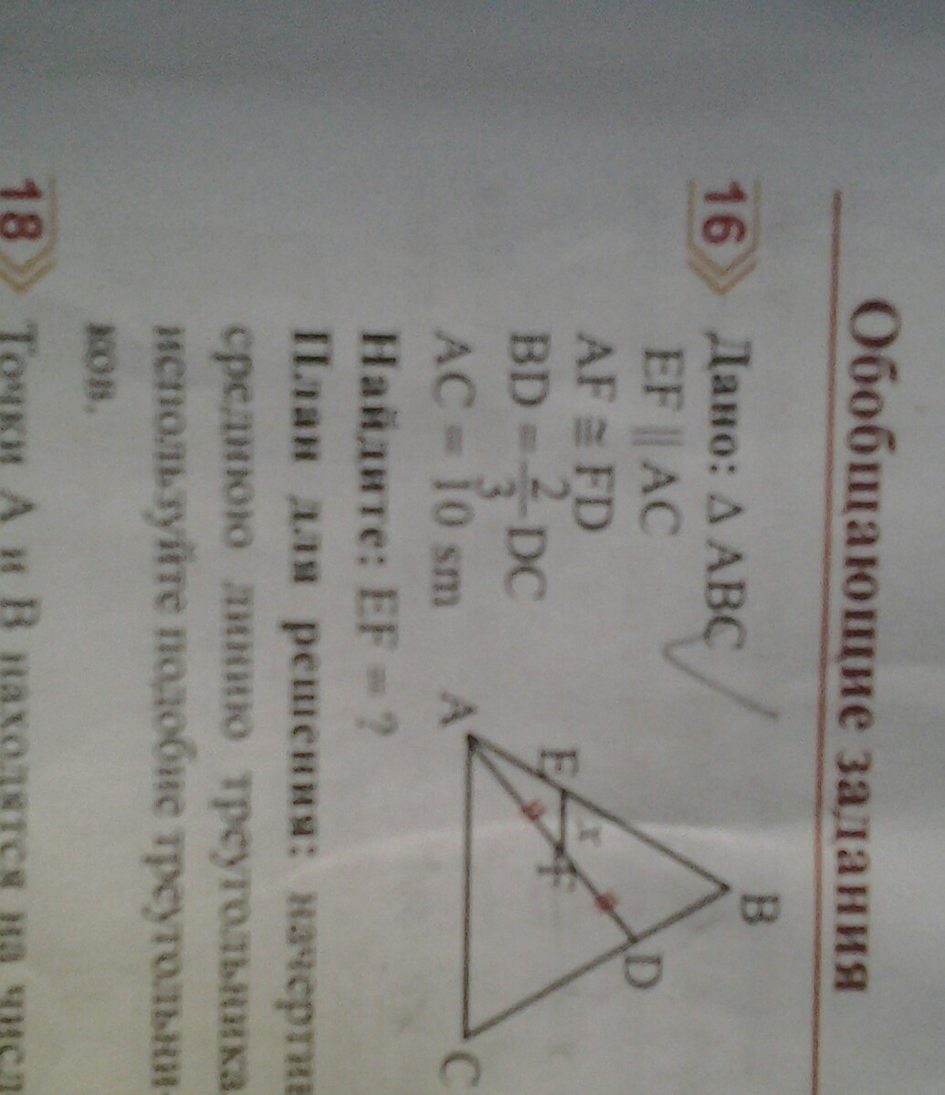 строим отрезок ДК параллельный АС По теореме Фалеса ДК/АС=ВД/ДС