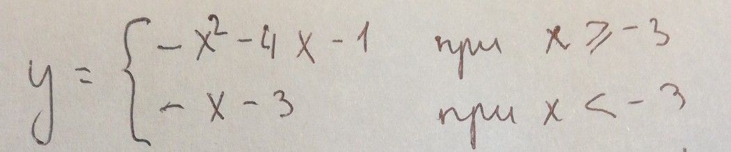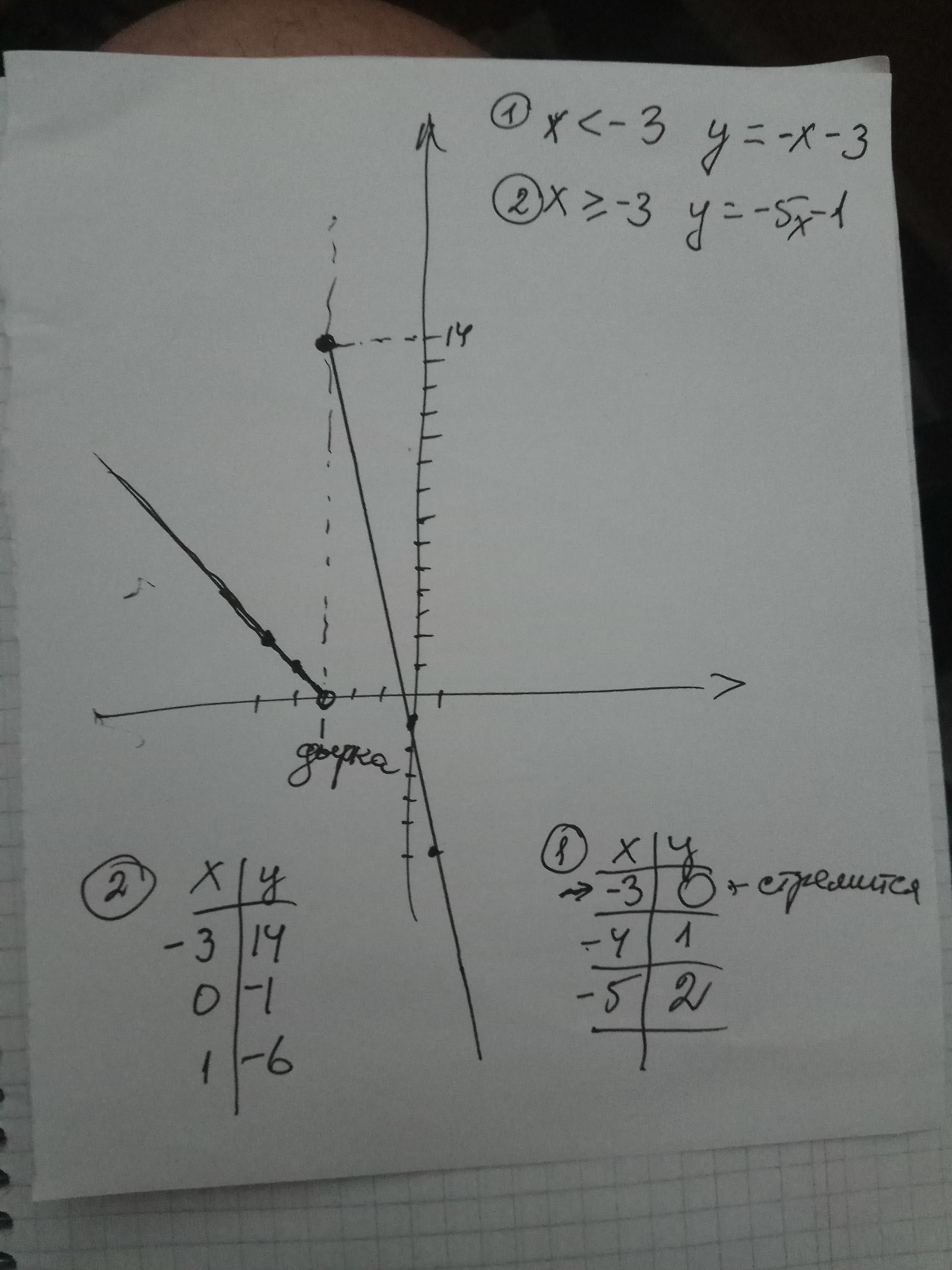 первая часть графика при х меньше -3 заканчивается дырочкой. а вторая часть заканчивается черной точкой ,число включается.ответ на листке