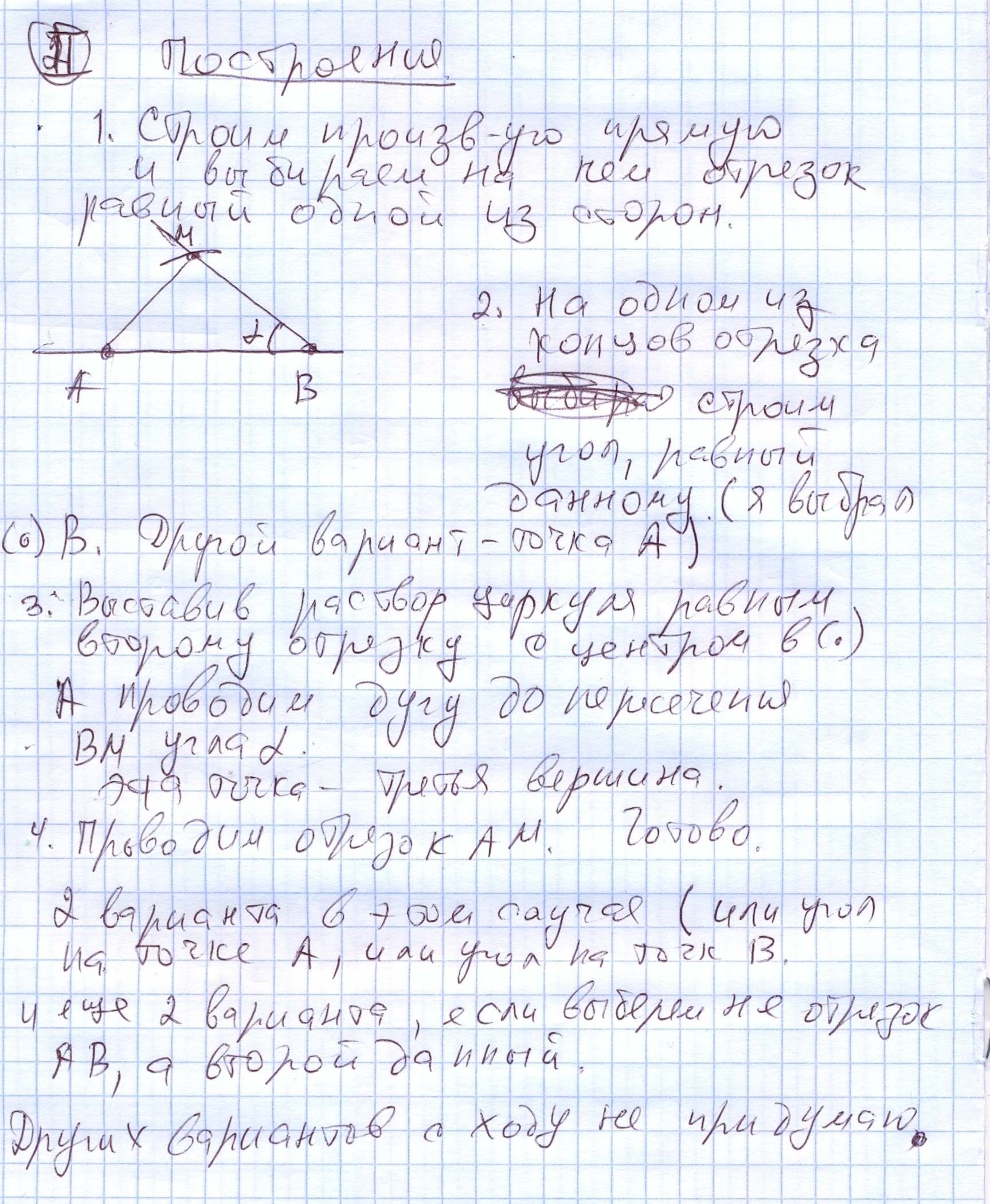 Постройте треугольник по длинам двух его сторон и углу,