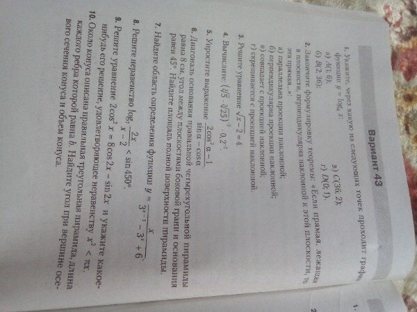 1.просто подставить координаты точек, данных в вариантах ответов и узнать, какая из них подходит.