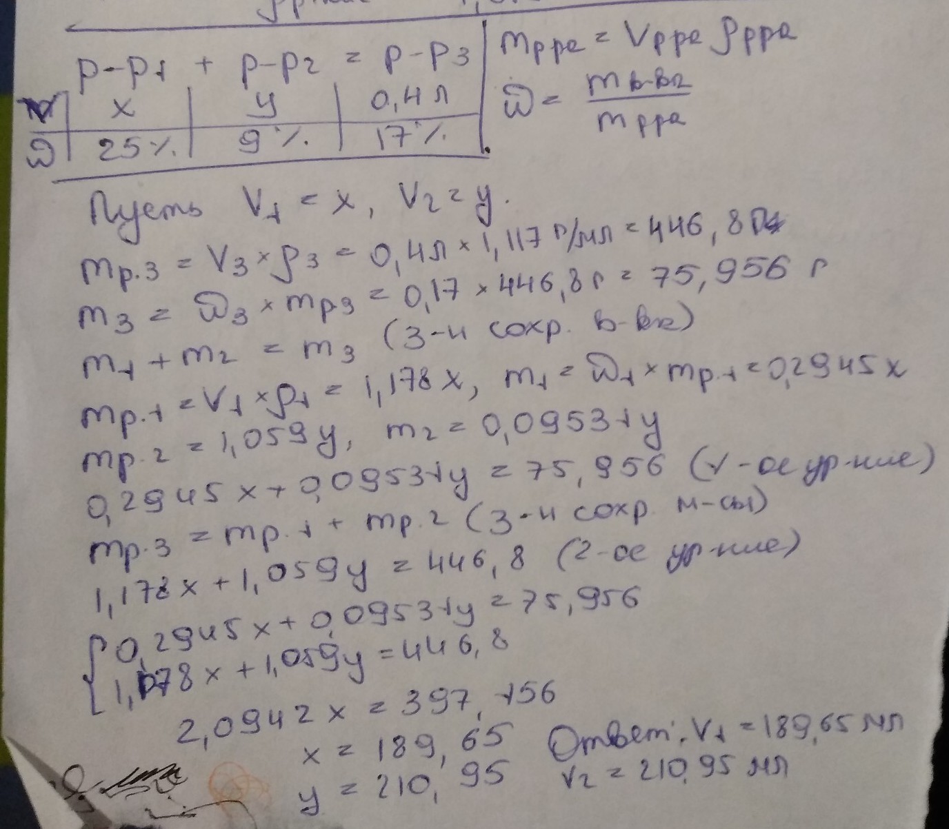 1 .Какой объем раствора с массовой долей серной кислоты 25 % ( плотность 1,178 / r / мл ) и раствора с массовой до1 : й серной кислоты 9 % ( плотность 1,059 г / мл ) нужно взять для приготовления 0,4 л раствора с массовой долей 17 %( плотность 1,117 г / мл ) ?