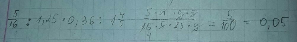 1)5/16:1,25=5/16:1,25/100=5/16:125/100=5/16*100/125=100/400=1/4