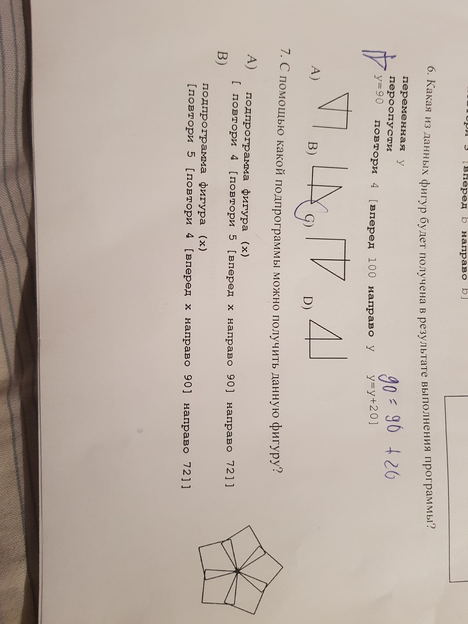 -углы поворота тоже совпадают (после отрисовки квадрата возвращаемся опять к центральной точке, и даже угол поворота не меняется, а потом идёт поворот на 72 градуса. Пять таких поворотов как раз дадут один оборот вокруг оси: 5*72=360 градусов, то есть рисунок сомкнётся с первым идеально, как на рисунке).
