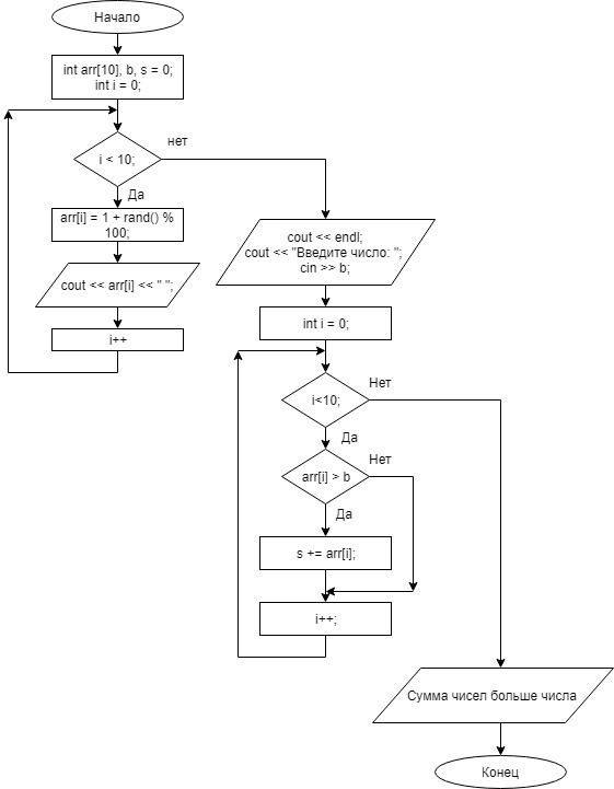 cout « "Cумма чисел больше числа " « b « " = " « s « endl;