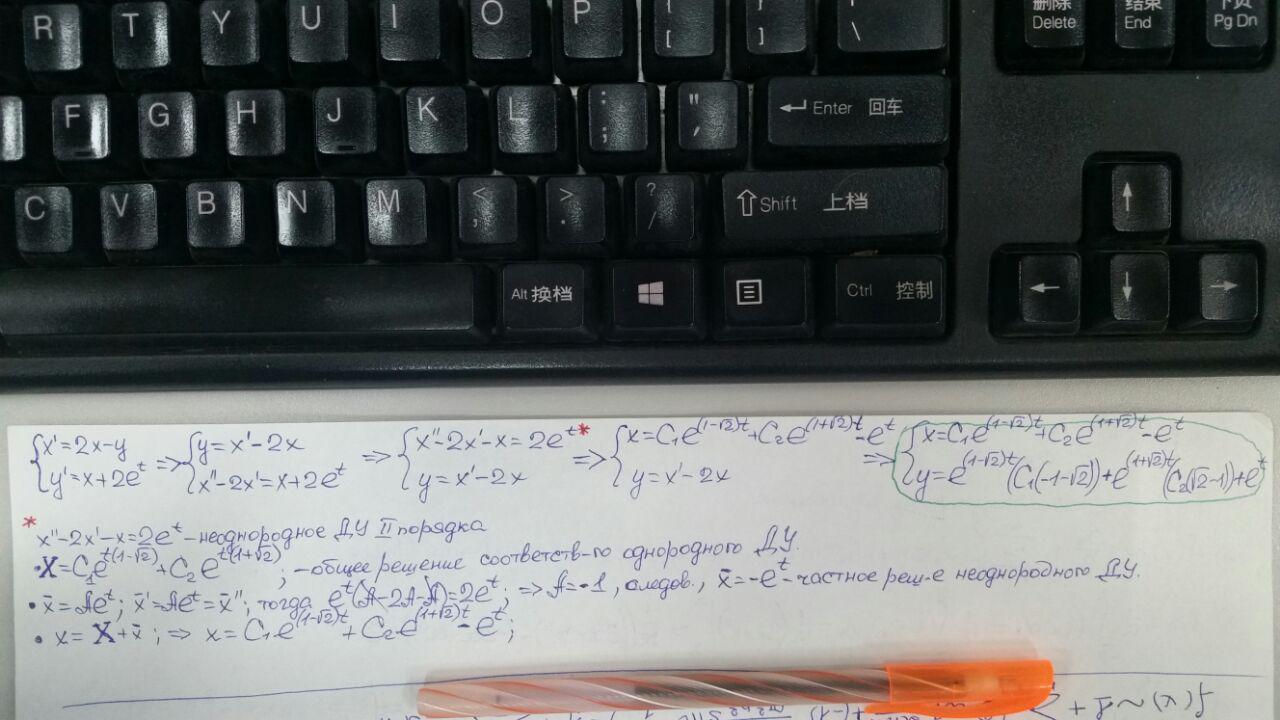 обратите внимание на то, что решение неоднородного ДУ дано отдельно, с красной пометкой, ответ отмечен зелёным.
