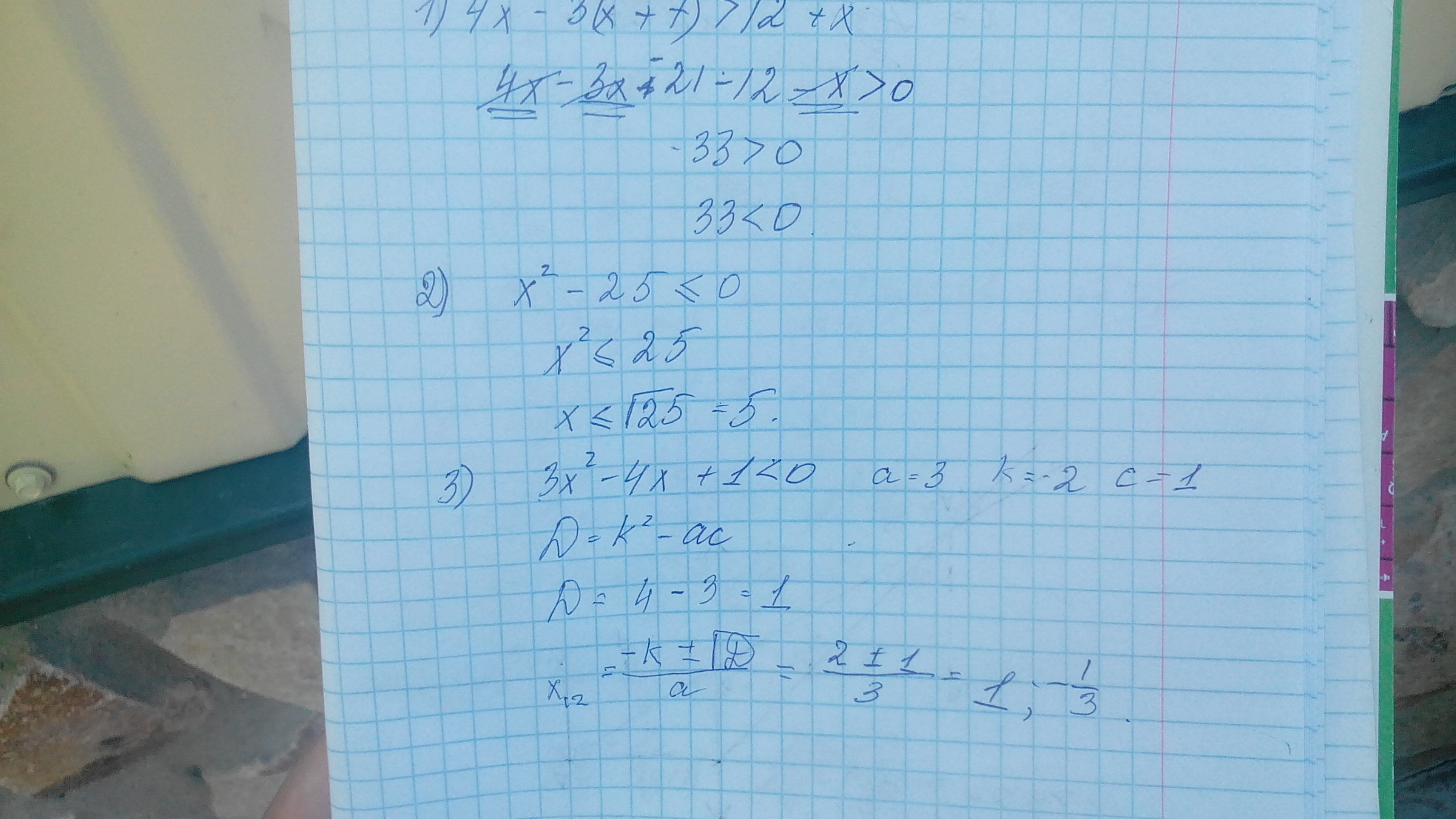 3) 3x^2-4x+1<0 найти дискриминант
