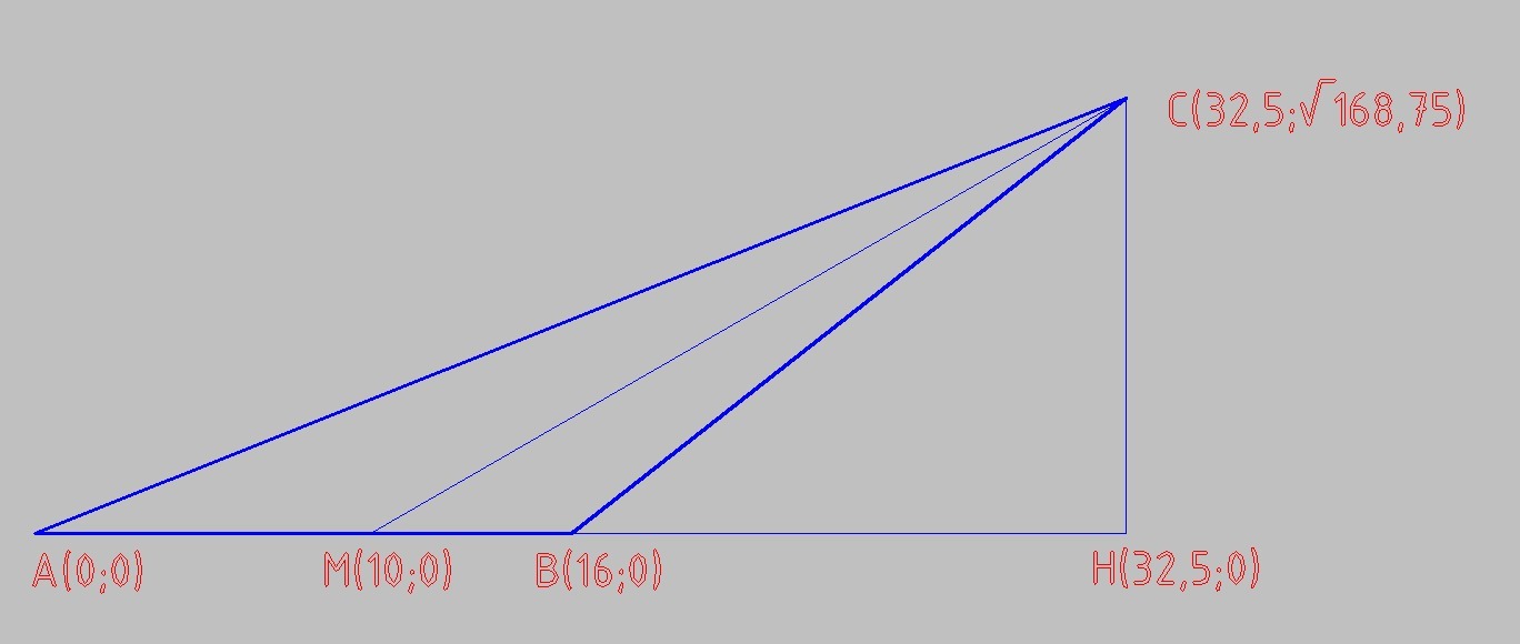 Ищем точку C(x;y) по известным расстояниям AC = 35 и BC = 21