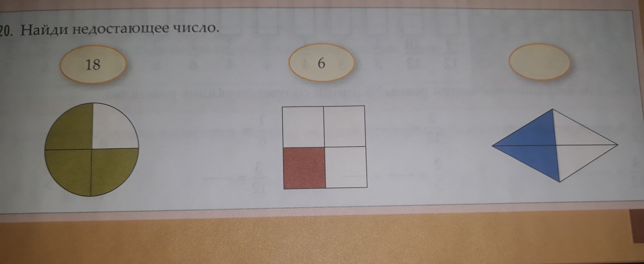 одна четвертинка равна 6, 3 четвертинки равно 3*6=18, значит 2 четвертинки равно 6*2=12