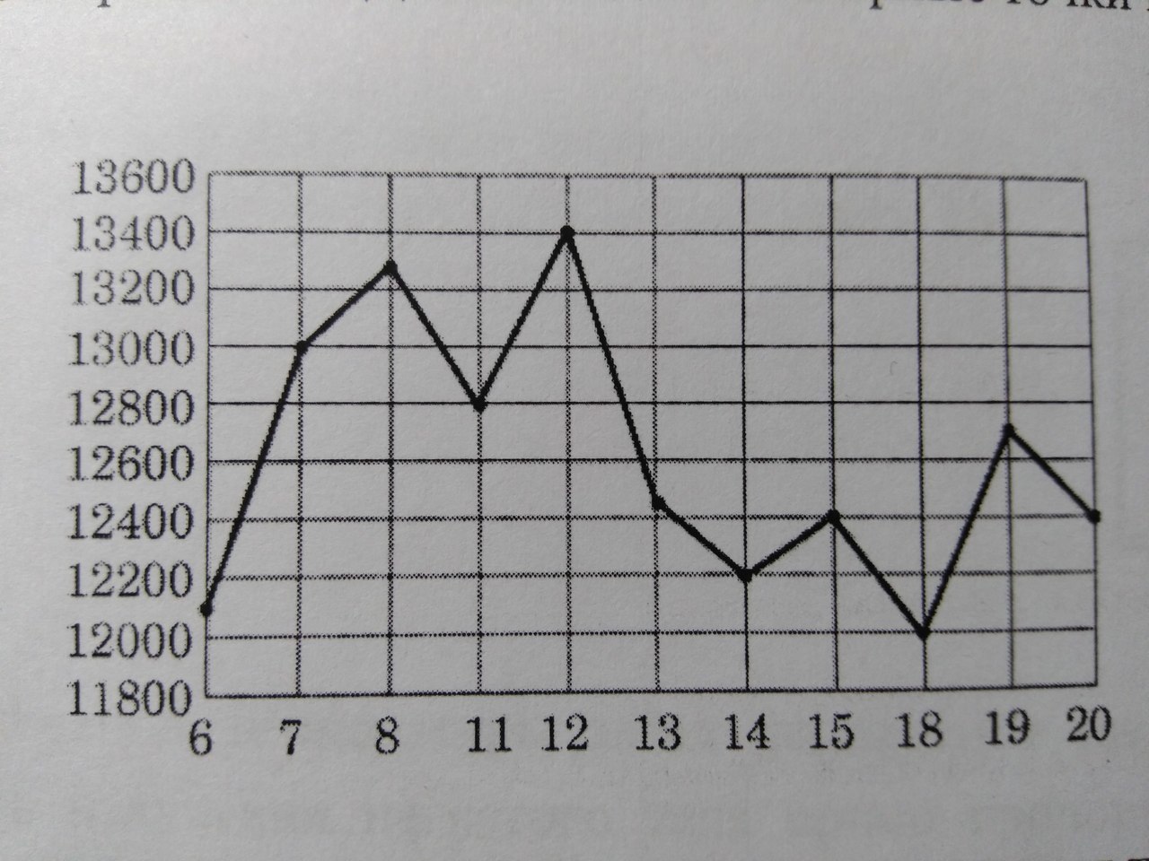 На рисунке жирными точками показана цена никеля на момент закрытия биржевых торгов во все рабочие дни с 6 по 20 мая 2009 г. По горизонтали указываются числа месяца, по вертикали - цены тонны никеля в долларах США. Для наглядности жирные точки на рисунке соединены линией. Определите по рисунку наибольшую цену никеля на момент закрытия торгов в указанный период (в долларах США за тонну).