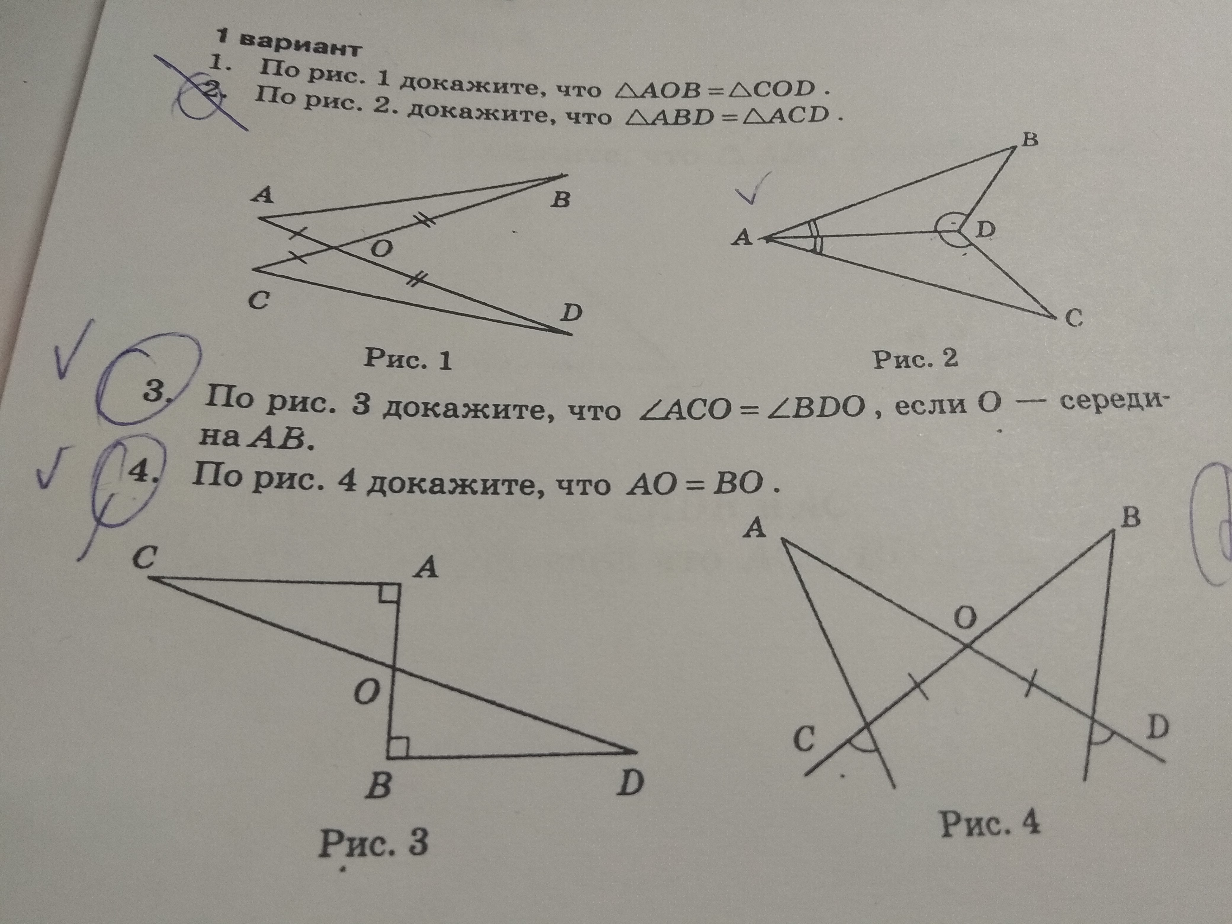 Отсюда следует, что треугольник АСО= треугольнику ВОД (по стороне и двум прилежащим к ней углам)