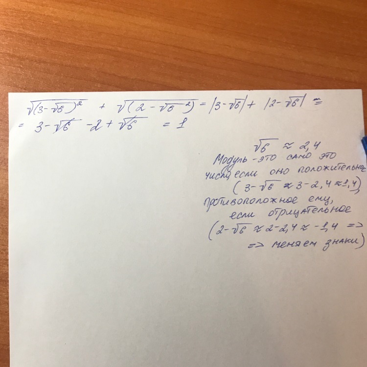 по формулам свойств степени квадратный корень сокращается с тем квадратом который под корнем