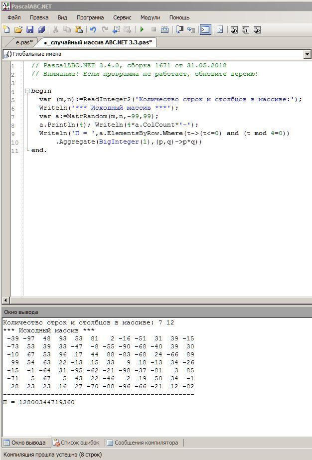 Writeln('П = ',a.ElementsByRow.Where(t->(t<=0) and (t mod 4=0))