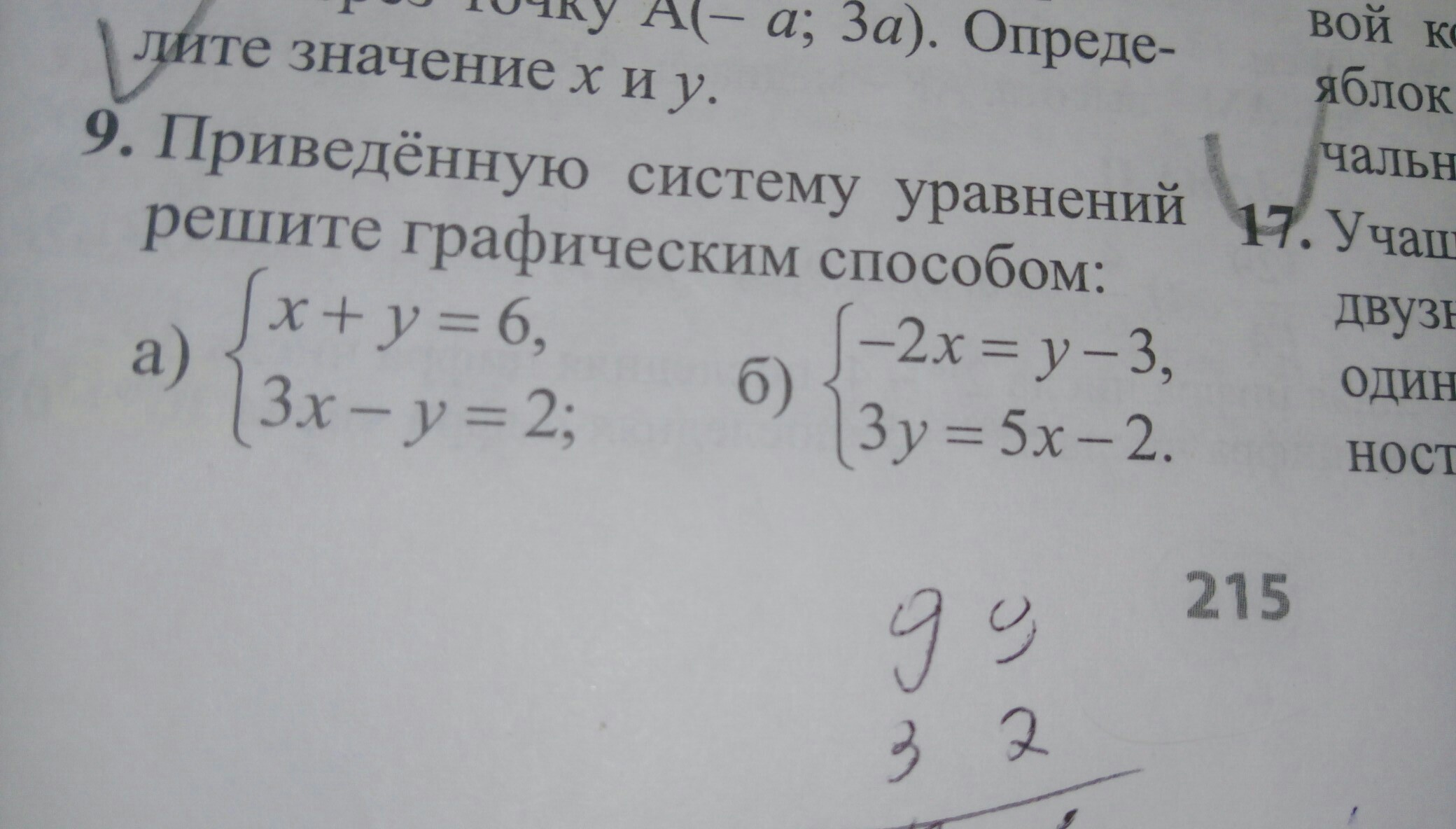 приведенную систему уравнений решите графическим способом. Очень срочно!!! Пожалуйста!!!