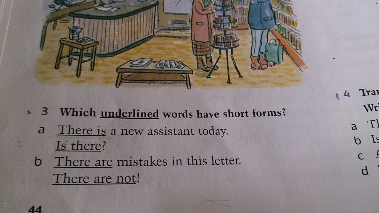 3 Краткие формы могут быть в There is a new assistant today и в There are mistakes in this letter