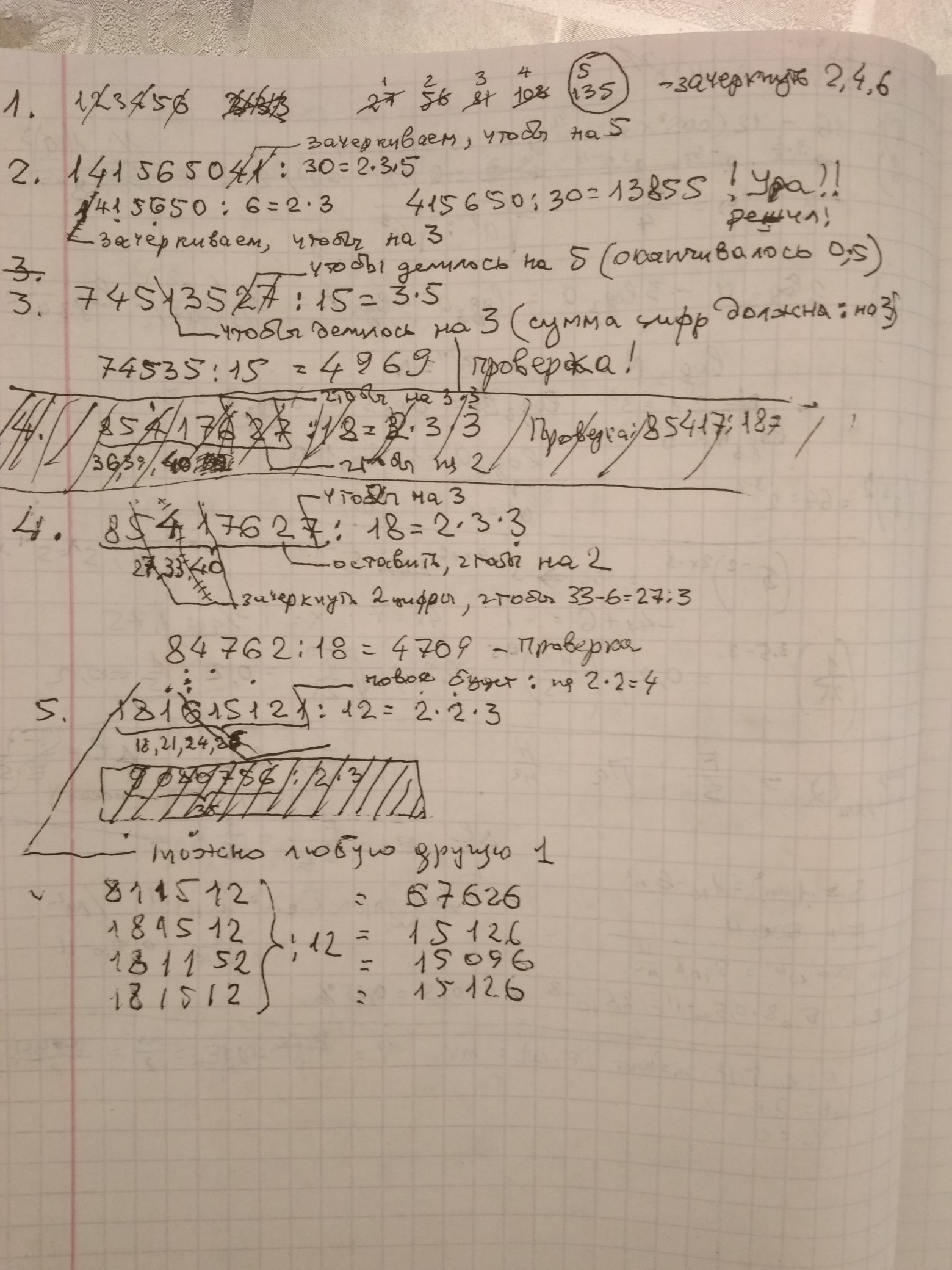 Посылаю на фото. Надо знать признаки делимости на 2, 3, 5