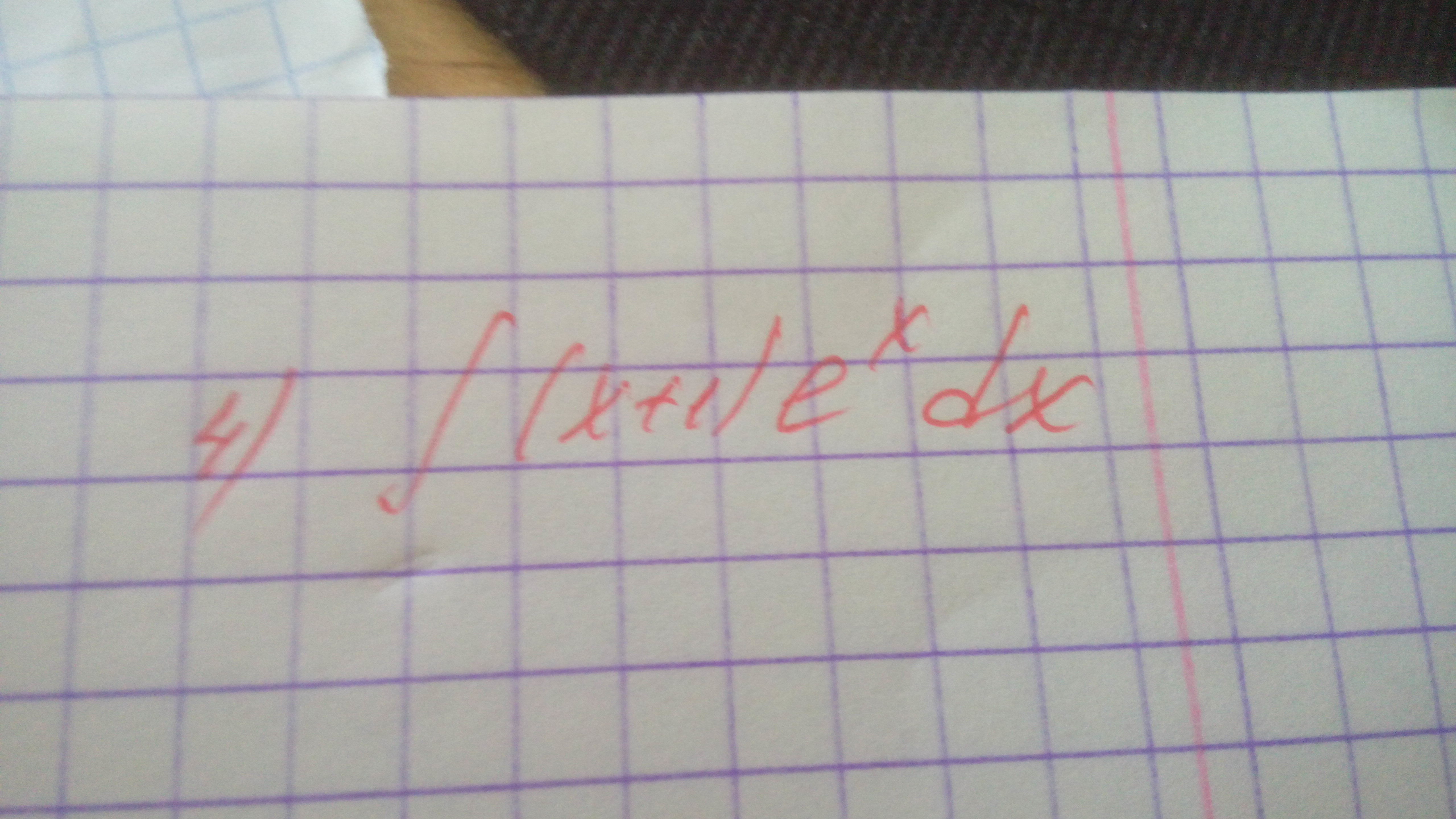 int (x+1)e^{x}, dx=[, u=x+1; ,; du=dx,; dv=e^{x}dx,; v=e^{x}, ]=\\=uv-int v, du=(x+1)e^{x}-int e^{x}, dx=(x+1)e^{x}-e^{x}+C=\\=e^{x}cdot (x+1-1)+C=xcdot e^{x}+C
