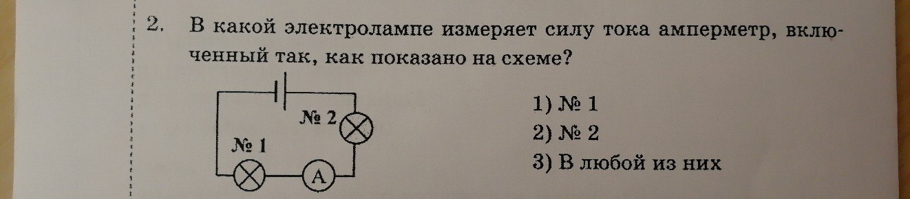 Лампы соединены последовательно, поэтому в них течет одинаковый ток. Амперметр измеряет ток в обеих лампах.