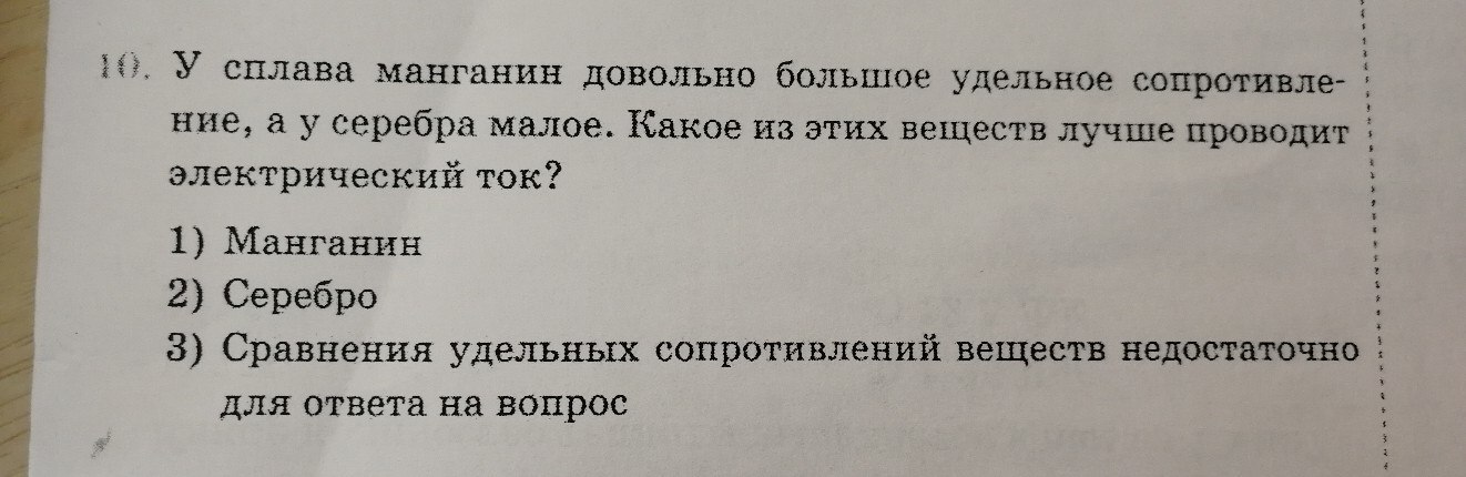 Я думаю,что серебро,так как серебро- это первый по проводимости металл в мире. Манганин-это медь(второй в мире).